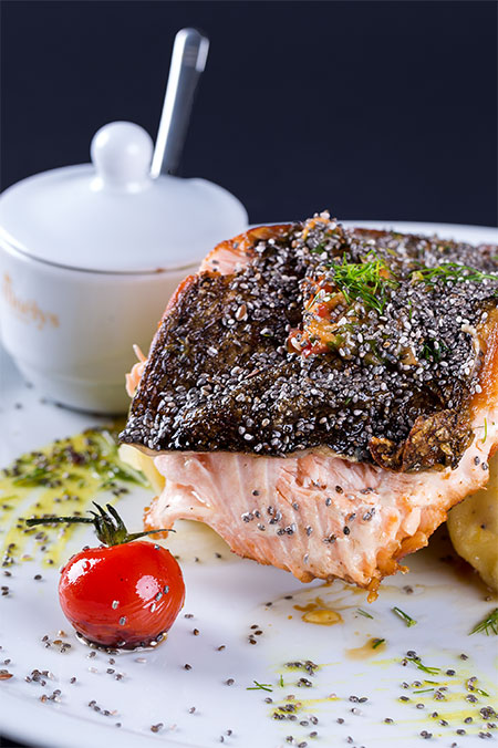 Ne ofrojmë një koncept unik të ushqimit, duke përfshirë antipastat më të mira, peshkun më të freskët, ushqimet e mahnitshme të detit dhe biftekun e jashtëzakonshëm. Një detaj tjetër unik i restaurantit tonë janë pijet dhe likerët e importuara nga Gjermania, karakteristikë e cila na dallon nga restaurantet tjera.